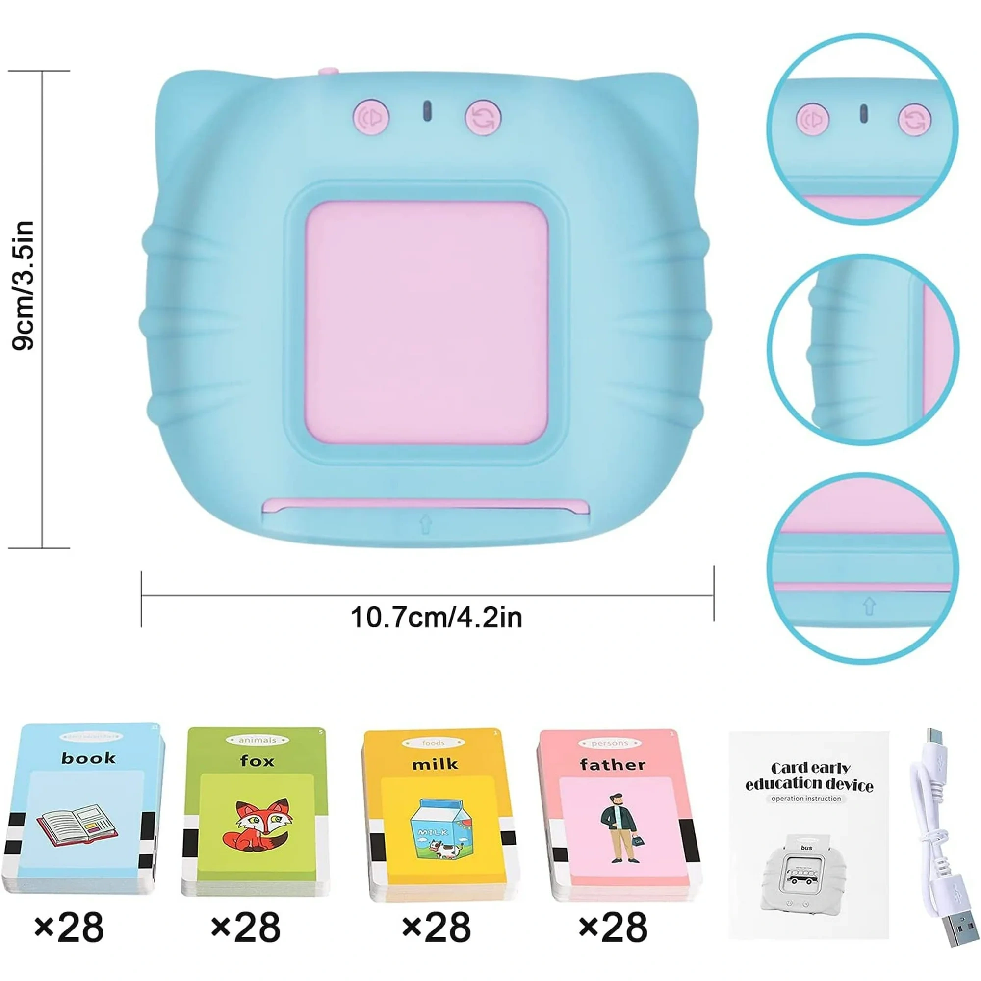 Education Toys Audible Card Reader: This talking flash card educational toy including a card reader and 112 double-sided flash cards covering subjects like animals, persons, transports, fruits, vegetables, nature, persons, jobs and shapes. Ideal study and learning tool for toddler.